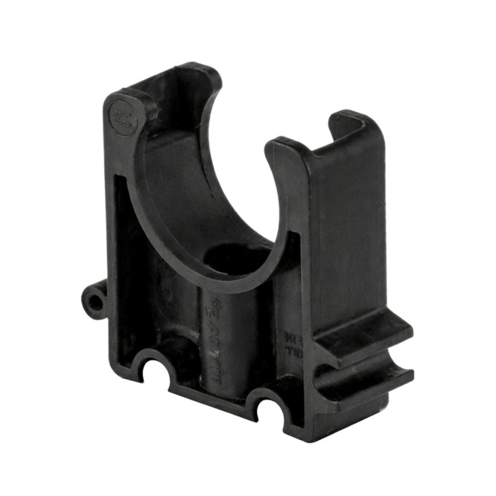 De buisklem van Pimtas is gemaakt van grijs PP materiaal. De tyleenslang of de PVC buis kan tussen de buisklem worden geklemd.