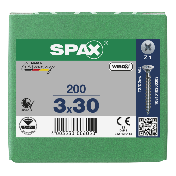 Spax spaanplaatschroeven PZ1 verzinkt 3 x 30 mm voldraad 200 stuks