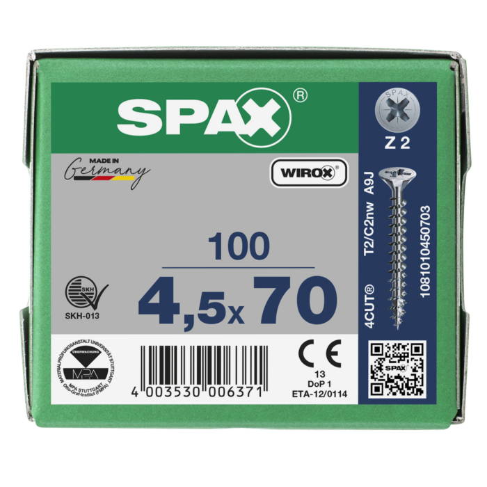 Spax spaanplaatschroeven PZ2 verzinkt 4.5 x 70 mm voldraad 100 stuks