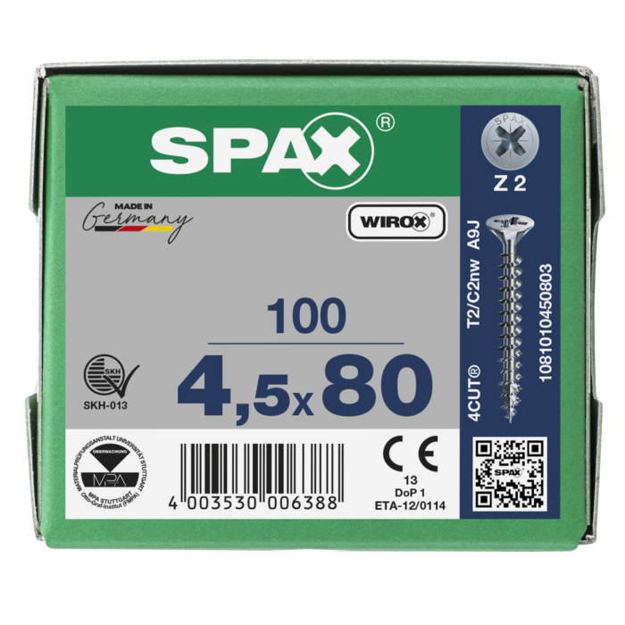 Spax spaanplaatschroeven PZ2 verzinkt 4.5 x 80 mm voldraad 100 stuks