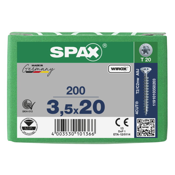 Spax spaanplaatschroeven T20 verzinkt 3.5 x 20 mm voldraad 200 stuks