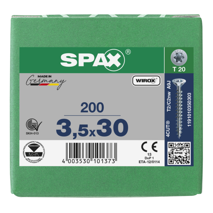Spax spaanplaatschroeven T20 verzinkt 3.5 x 30 mm voldraad 200 stuks